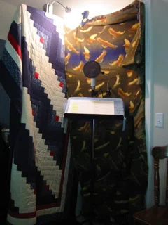 Notice the towel on the music stand to make sure that didn't reflect back.