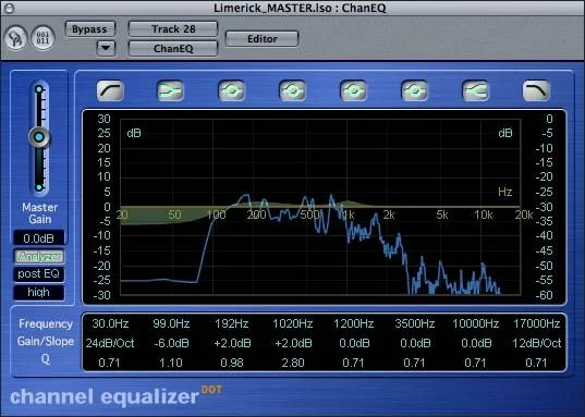 Finally, I'll speak a little bit to your master fader. The master fader is the last one the signals pass through before they go to your speakers. Essentially, all the audio gets processed here, so make sure that whatever plugs you use work for everything! There are two that I use fairly consistently.